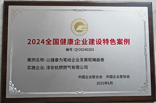 2025年8月3日,淳安杭燃公司收到中國(guó)企業(yè)聯(lián)合會(huì)、中國(guó)企業(yè)家協(xié)會(huì)授予的“2024全國(guó)健康企業(yè)建設(shè)特色案例”榮譽(yù)牌匾。8月8日上午,縣融媒體中心在縣衛(wèi)生健康局組織下,走進(jìn)我公司開(kāi)展專題視頻采訪,將淳安杭燃健康企業(yè)建設(shè)經(jīng)驗(yàn)向全縣推廣。